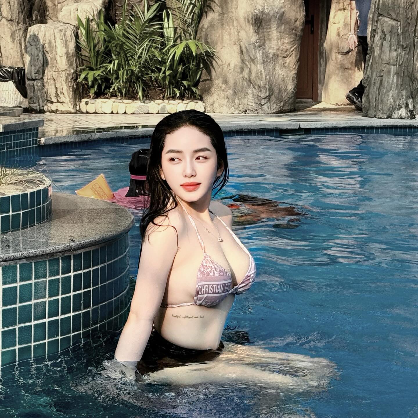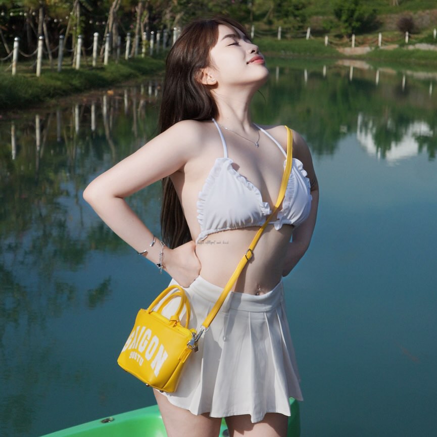 Điểm nhấn đầu tiên chắc chắn là vòng một căng đầy, gợi cảm trong từng khung hình. Chỉ cần một chiếc váy cúp ngực hay bộ bikini ôm sát, Kiều Tiên ngay lập tức khiến không gian xung quanh như nóng lên vài độ, phô diễn sự quyến rũ tự nhiên đầy khiêu khích.