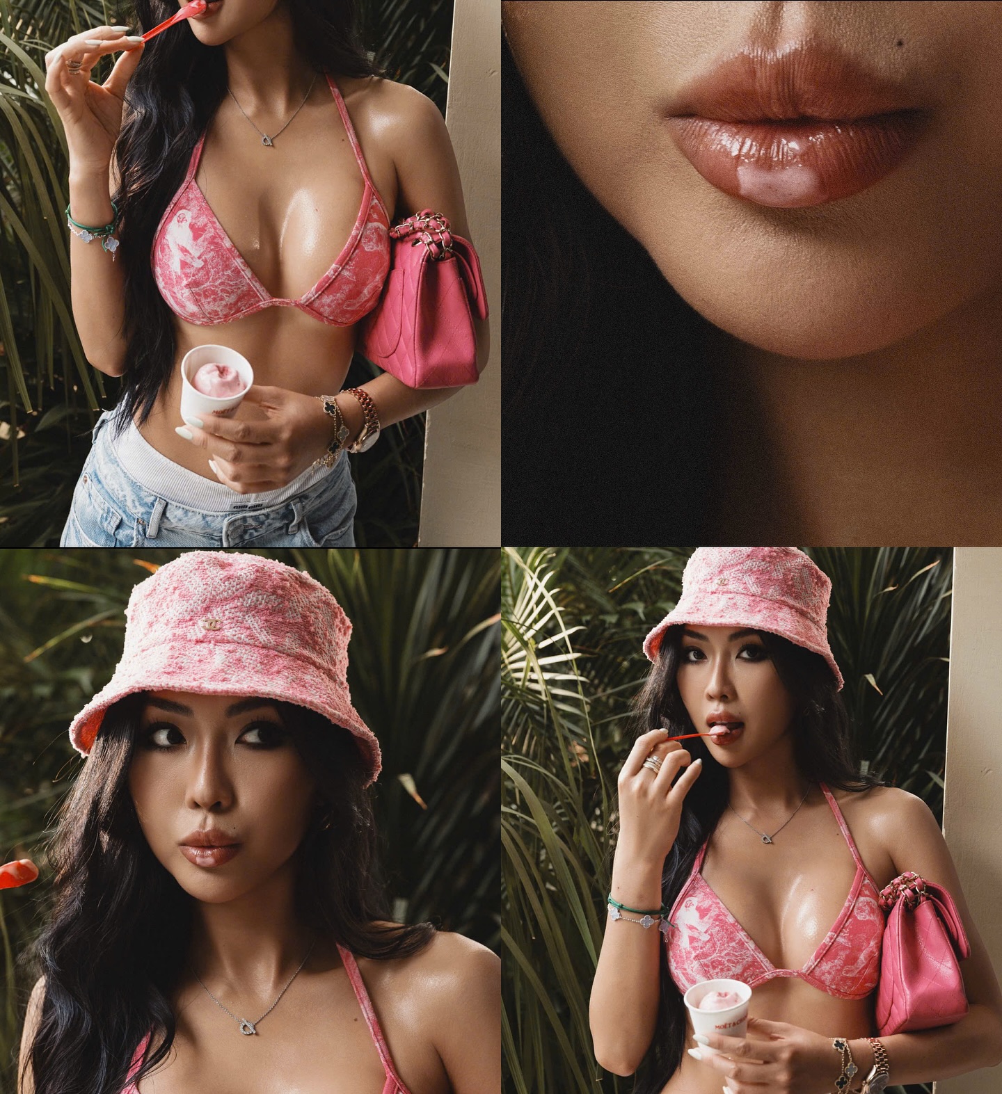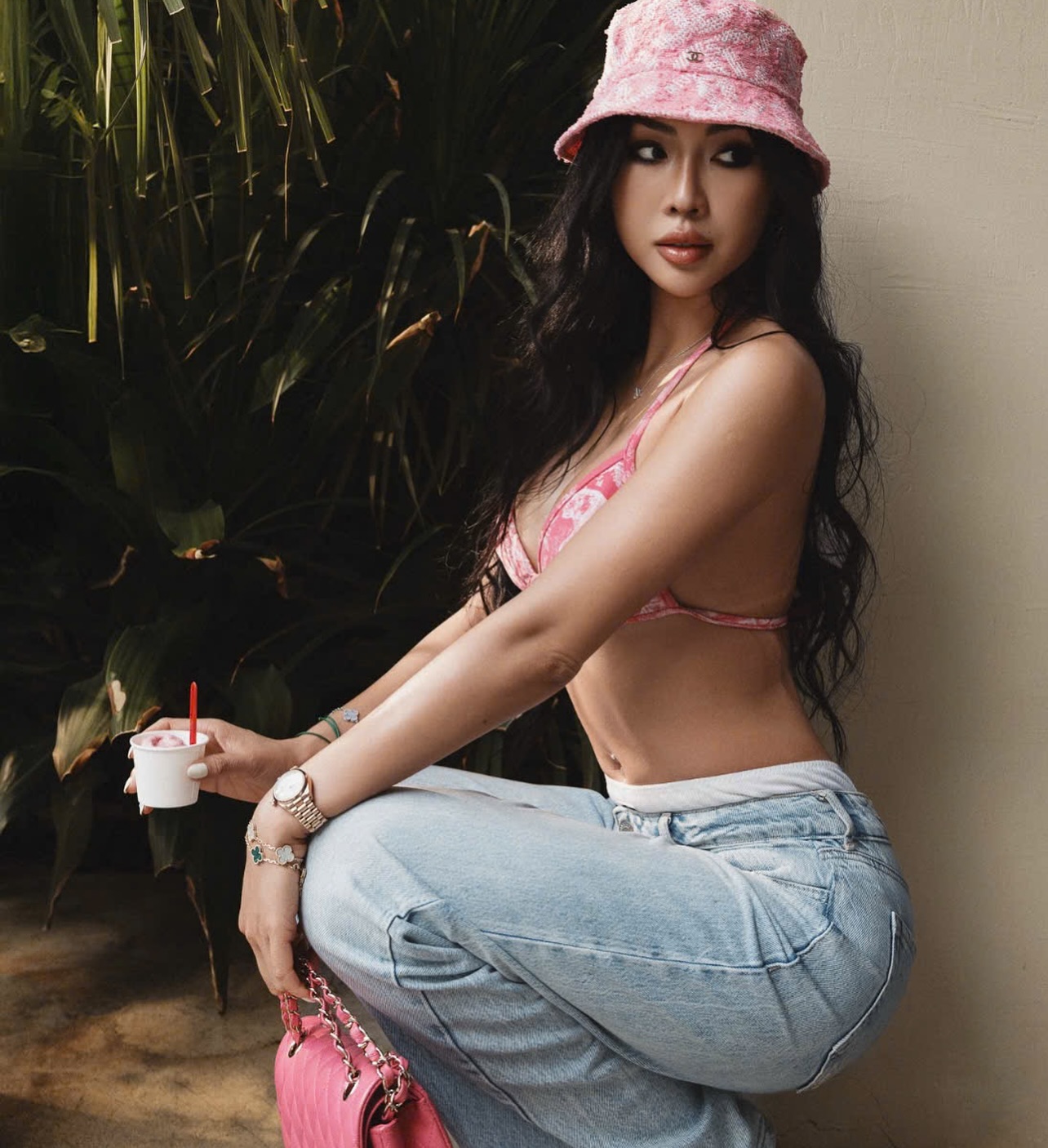 Nguyễn Đặng Tường Linh cực nóng bỏng khoe trọn đường cong trong bộ ảnh với bikini 2 dây màu hồng. Tôn đậm lên nét sexy của cô nàng.