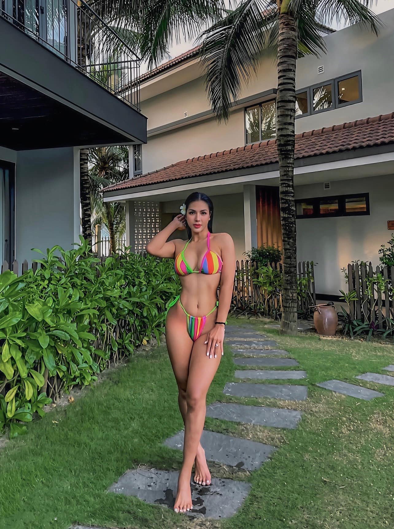 Maya Phạm không đơn thuần là một nữ gymmer – cô là “tác phẩm điêu khắc sống” với những đường cong được “đúc khuôn” từ nắng gió phòng gym. Mỗi bước đi là sóng đùi căng mọng, mỗi cú xoay người lộ bờ eo “con kiến” săn chắc đến nghẹt thở.