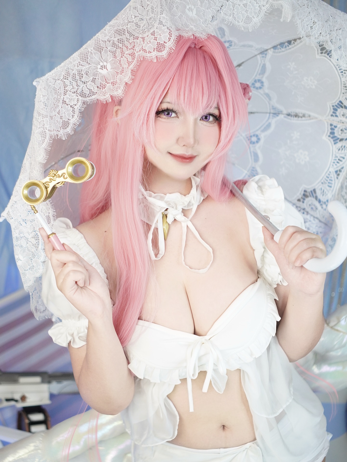 Azula-chan sở hữu vòng 1 đầy đặn, cân đối, luôn là tâm điểm trong mọi khung hình. Dù là trang phục kín đáo hay thiết kế ren lace táo bạo, đường cong quyến rũ của cô vẫn khiến người xem “đứng ngồi không yên”. Đặc biệt, khi cosplay những nhân vật như K/DA Ahri, Bayonetta hay 2B, cô nàng càng phô diễn trọn vẹn sự nóng bỏng đỉnh cao với những đường cut-out tinh tế, khoe khéo làn da trắng mịn và đường nét cơ thể hoàn hảo.